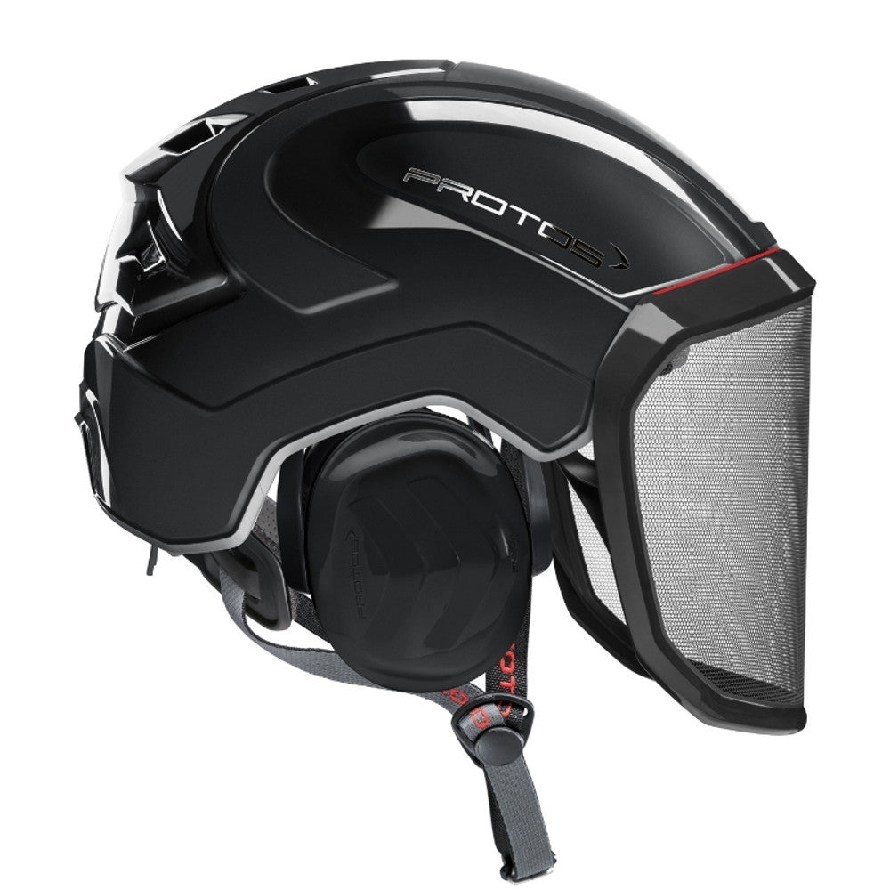 The Protos Integral Arborist Helmet in black offers advanced protection tailored for professional arborists. Its ergonomic design ensures optimal comfort during extended use, while integrated ventilation maintains airflow to reduce heat buildup. Engineered for durability and safety, this helmet provides reliable impact resistance and secure fit, making it an essential choice for demanding tree care tasks.